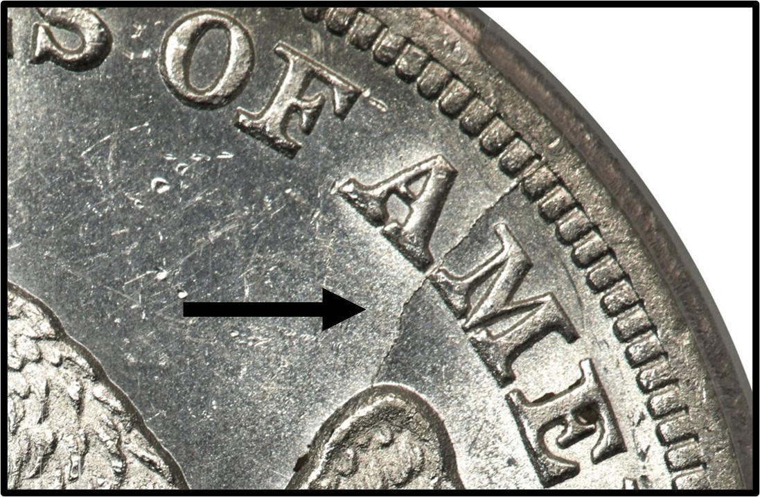 use of Obverse 2 to strike OC-4 examples. The marker that remains after die polishing and is