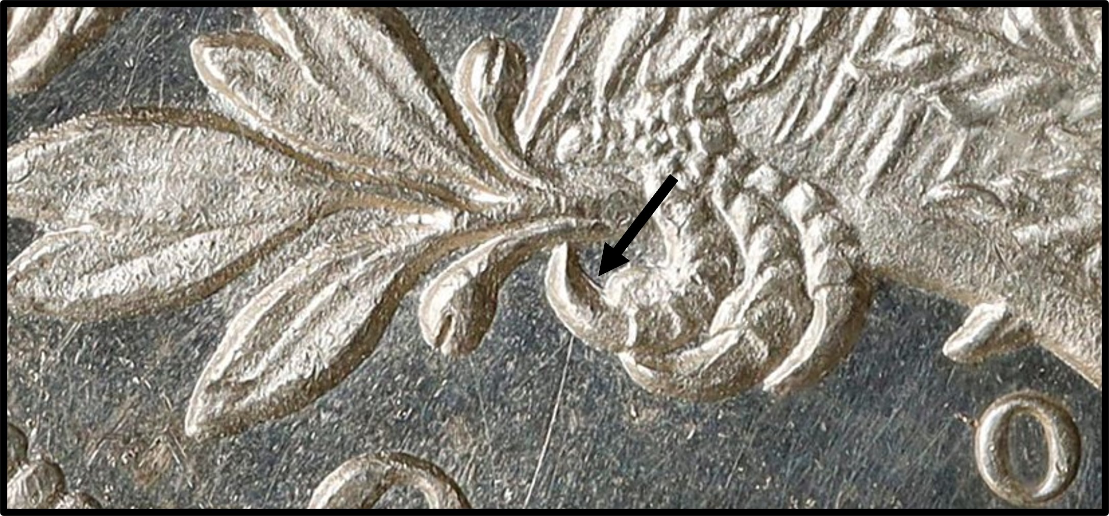 - The die has been polished. All traces of the repunched date and the die lines above 60 have been removed.
