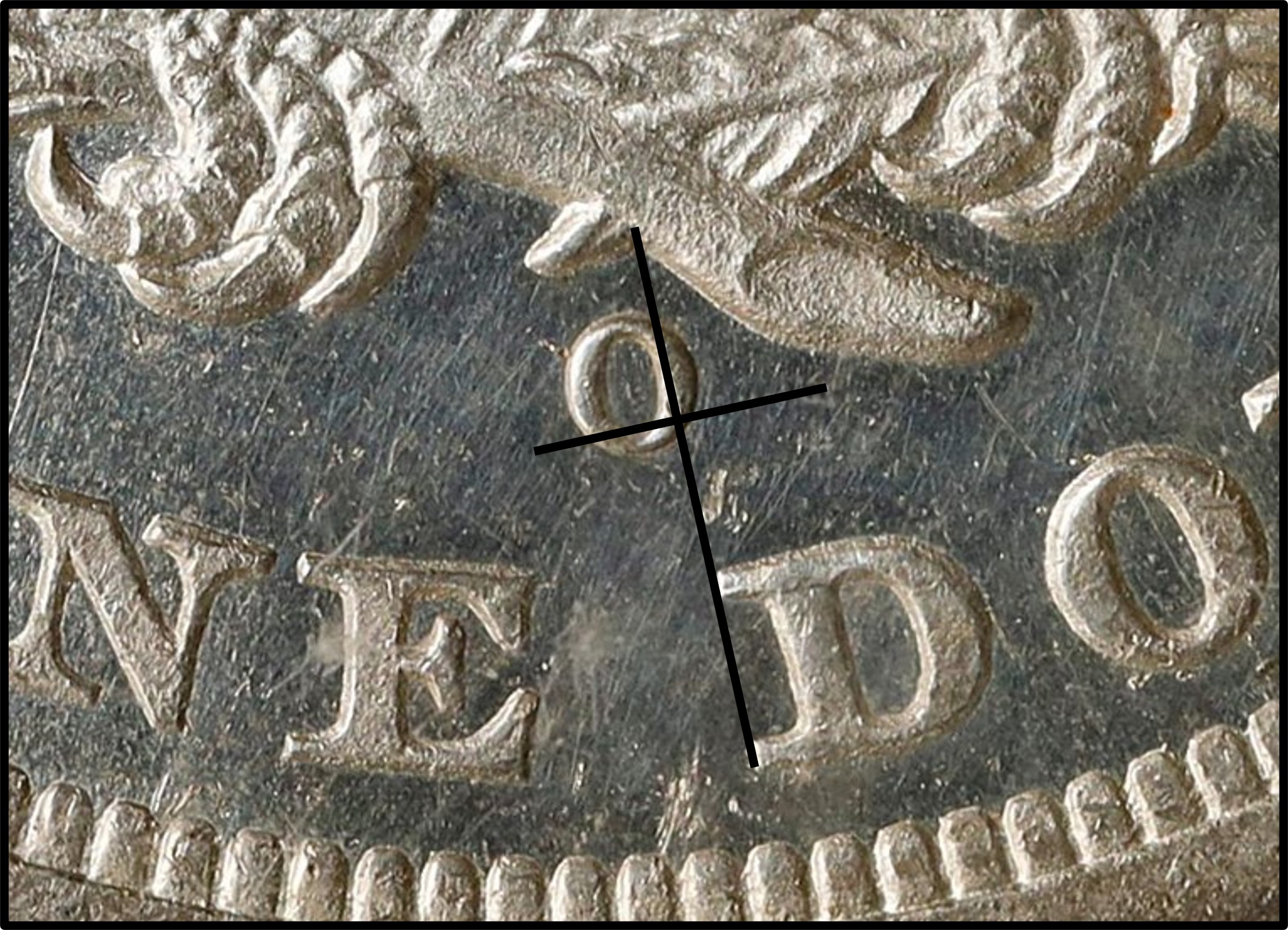 One additional marker that can aid with attribution is a tiny die line within the left claws, shown in the following photo.