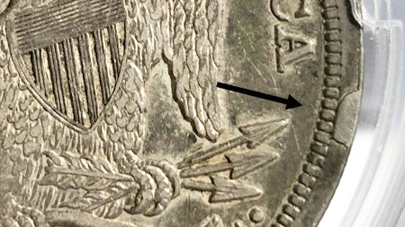 are very rare. We’ve also seen two examples of late die states with 5-degree clockwise rotation.