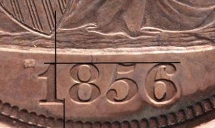 This is the only use of Obverse P1 and the only use of Reverse PA in 1856.
